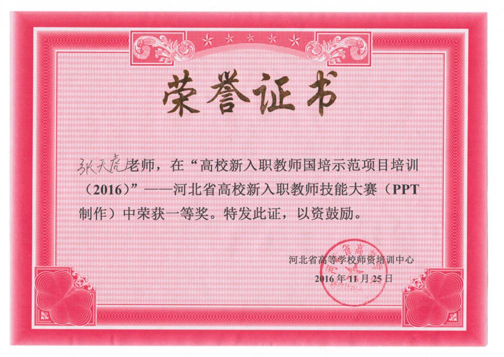 张老师是一个有心人。平时注重积累,学习了各种多媒体教学技能,并在河北省教育厅组织的高校新入职教师国培示范项目培训中获得了PPT制作一等奖。自2018年学校推广使用线上教学平台起,他又参加了教务处以及超星公司开展的多次培训,完成了多门课程的线上建设,并获得了探花视频