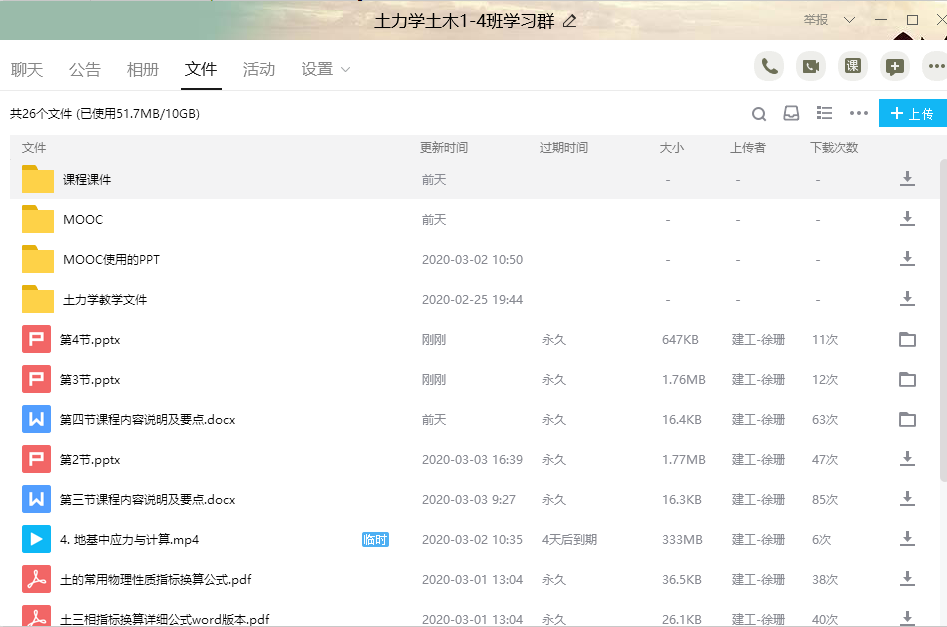 图3 QQ群线上课程的教学文件共享界面
