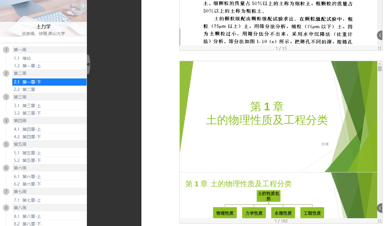 图1 《土力学》学习通课程封面与资料界面截图