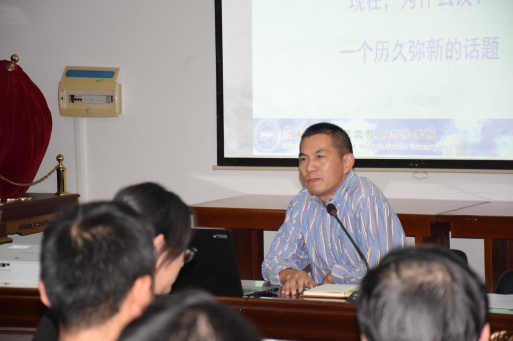 郝圣旺老师以重温教育初心开题,结合习近平总书记就教育改革发展提出一系列新理念新思想新观点,强调教育必须把培养社会主义建设者和接班人作为根本任务。郝老师由德之基石——日常点滴工作说起,师德即爱国、踏实做好工作,注重细节。作为教师要从大纲、教案、讲义、板书、阅卷等一系列细微工作见功夫。郝老师还讲到学为人师,要常怀敬畏之心。古人说:“亲其师,信其道。”新时代的教师要顺应时代需求,根据行业发展,改进教学法,与学生一起成长,常讲常新。