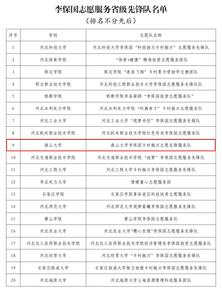 近日,河北省教育厅公布了《李保国志愿服务省级先锋队名单》,由校团委牵头、探花视频
