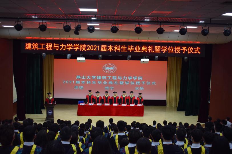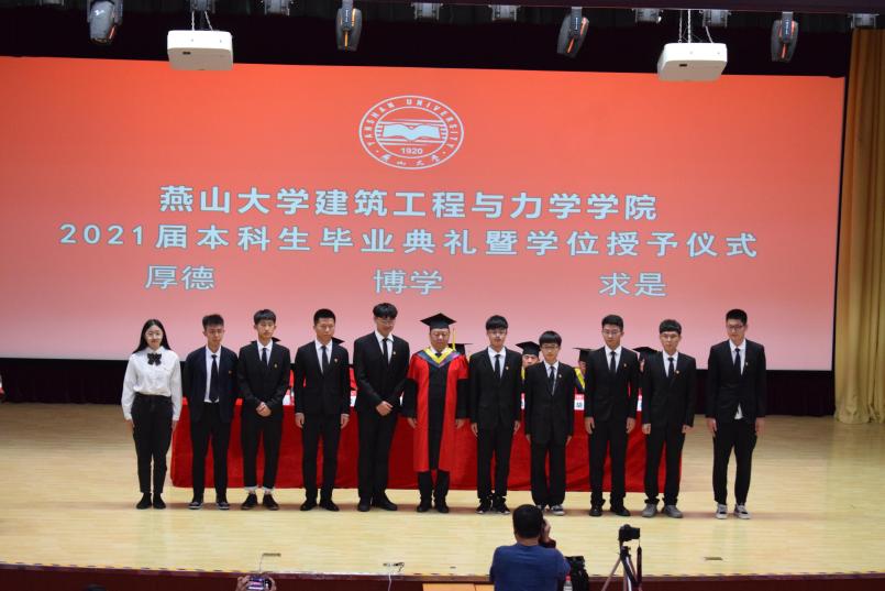 随后进行2021届本科毕业生学位授予仪式,院长赵庆新和各系主任为毕业生授学位。流苏向左,身份从在校生变成校友。合影只有1秒,在燕大的回忆却有无数秒。这是建工学院大家庭温暖的告别礼,更是毕业生人生腾飞的送行礼。