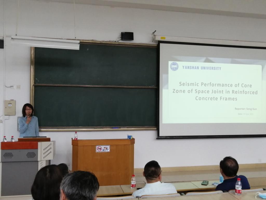 宋坤老师以“双向受力下钢筋混凝土空间节点抗震性能研究”为题,从项目的研究背景及意义、所得到的部分结果等方面用全英文做了学术报告。高嫄嫄老师从宾大项目的概括介绍、授课方式及课程包括的内容、课程学习的收获、英语学习及学术写作的一些经验分享等4个方面,全程用英文进行了汇报。冯柯老师选取“中国建筑史”课程第二章——宫殿、园林、住宅的内容,以土楼建筑为例用全英文介绍了不同地域的民居建筑特色,土楼的历史发展渊源、分布,福建土楼的建筑特征及建造工艺,以及土楼建筑的价值及保护意义。