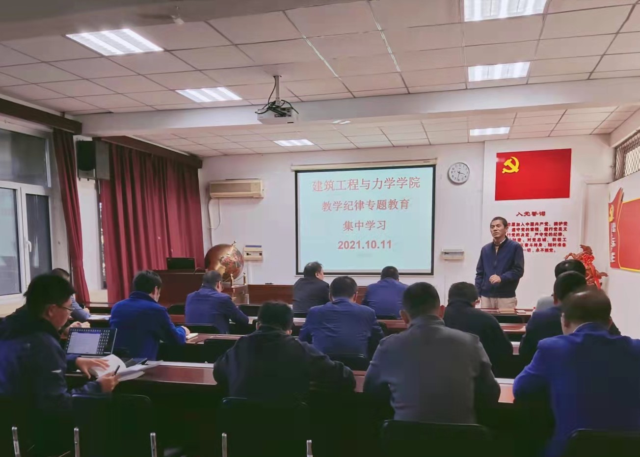 在建筑馆211室进行了教学纪律专题教育线下集中学习。学院领导、各系及实验中心正副主任和党支部书记、学生辅导员参加了学习。