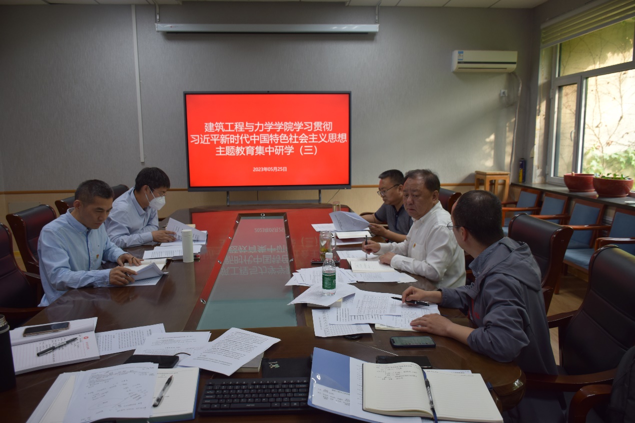在建筑馆203室开展学习贯彻习近平新时代中国特色社会主义思想主题教育第三次集中研学。学院领导班子成员参加研学,本次集中研学由学院党委书记宗家富领学。