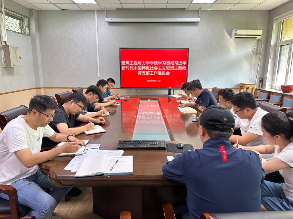 在建筑馆203室召开学习贯彻习近平新时代中国特色社会主义思想主题教育支部工作推进会。学院各党支部书记参加会议,会议由学院党委副书记王兵主持。