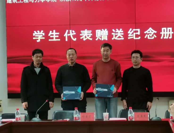 郝圣旺在致辞中感谢杜国君和陈英杰教授为教育事业、学生成长、学院建设与发展做出的卓越贡献,并为两位老师颁发了从教四十年的纪念奖杯。他还对青年教师提出了几点希望:一是学习两位老师的德行气质,学习他们勤学笃行、求是创新的躬耕态度,以及乐教爱生、甘于奉献的精神;二是弘扬教育家精神,践行教书育人使命,接好老教师们教书育人的接力棒;三是认真学习贯彻习近平总书记关于教育的重要讲话精神,将立德树人融入教育过程各环节,做“四有”好老师,当好“四个引路人”,履行好为党育人、为国育才的职责使命。