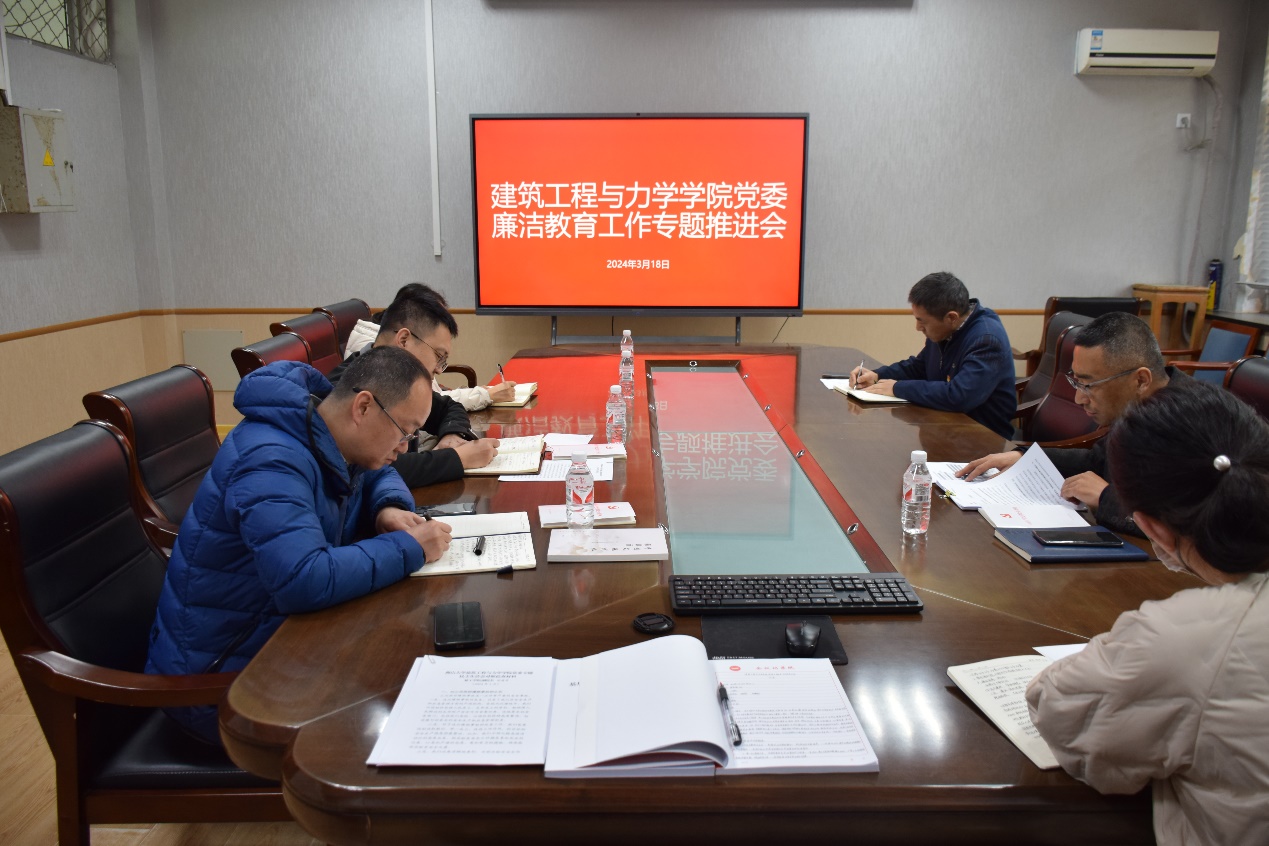在建筑馆203室召开廉洁文化建设工作推进会。学院领导班子、副处级辅导员参加会议,会议由学院党委书记王继东主持。