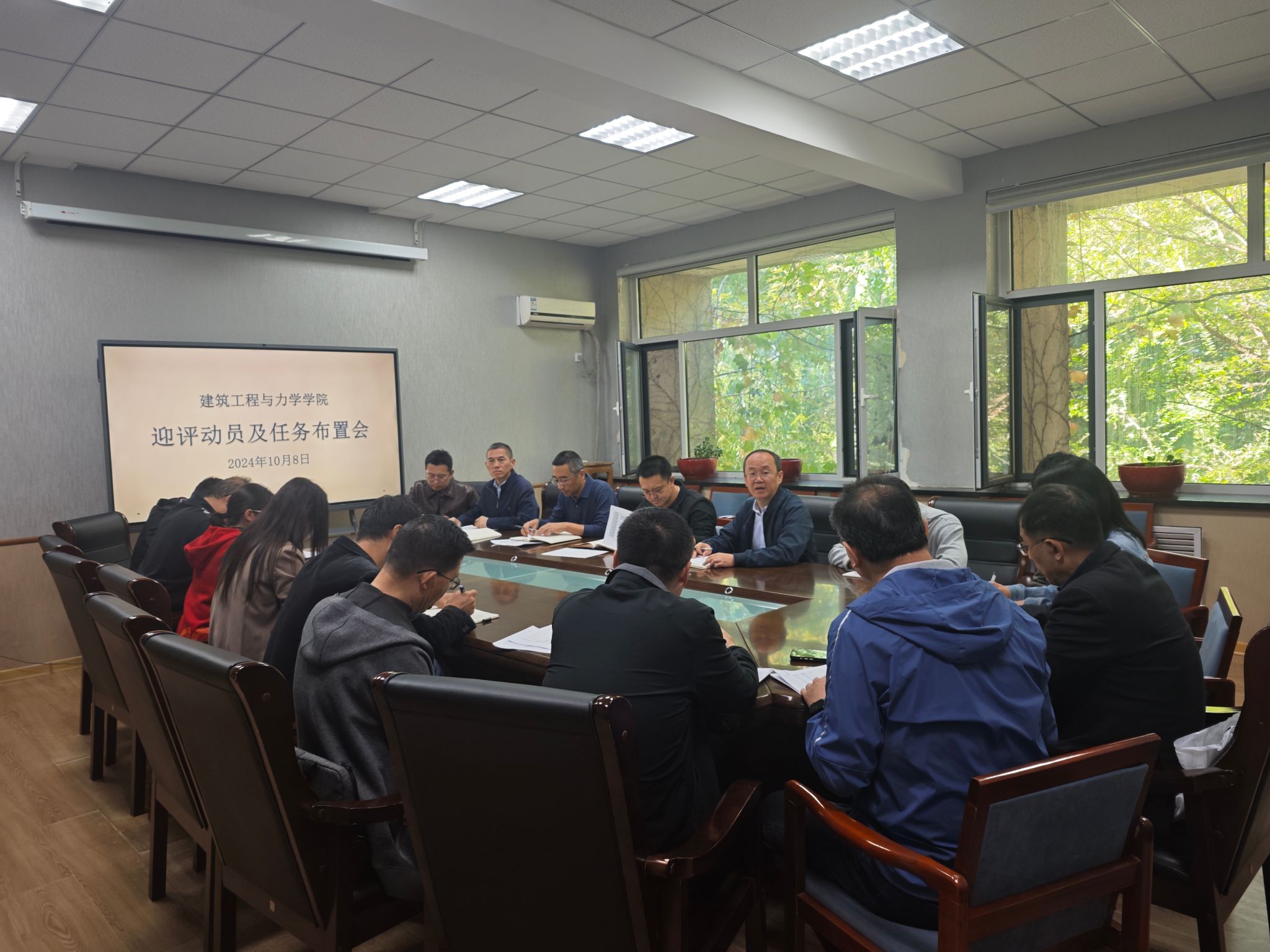 在建筑馆203会议室召开迎评动员及任务布置会,主管本科教学副院长胡建军主持会议,学院领导班子成员、各系(中心)主任、各教师党支部书记、本科教学督导和综合办公室相关工作人员参加会议。
