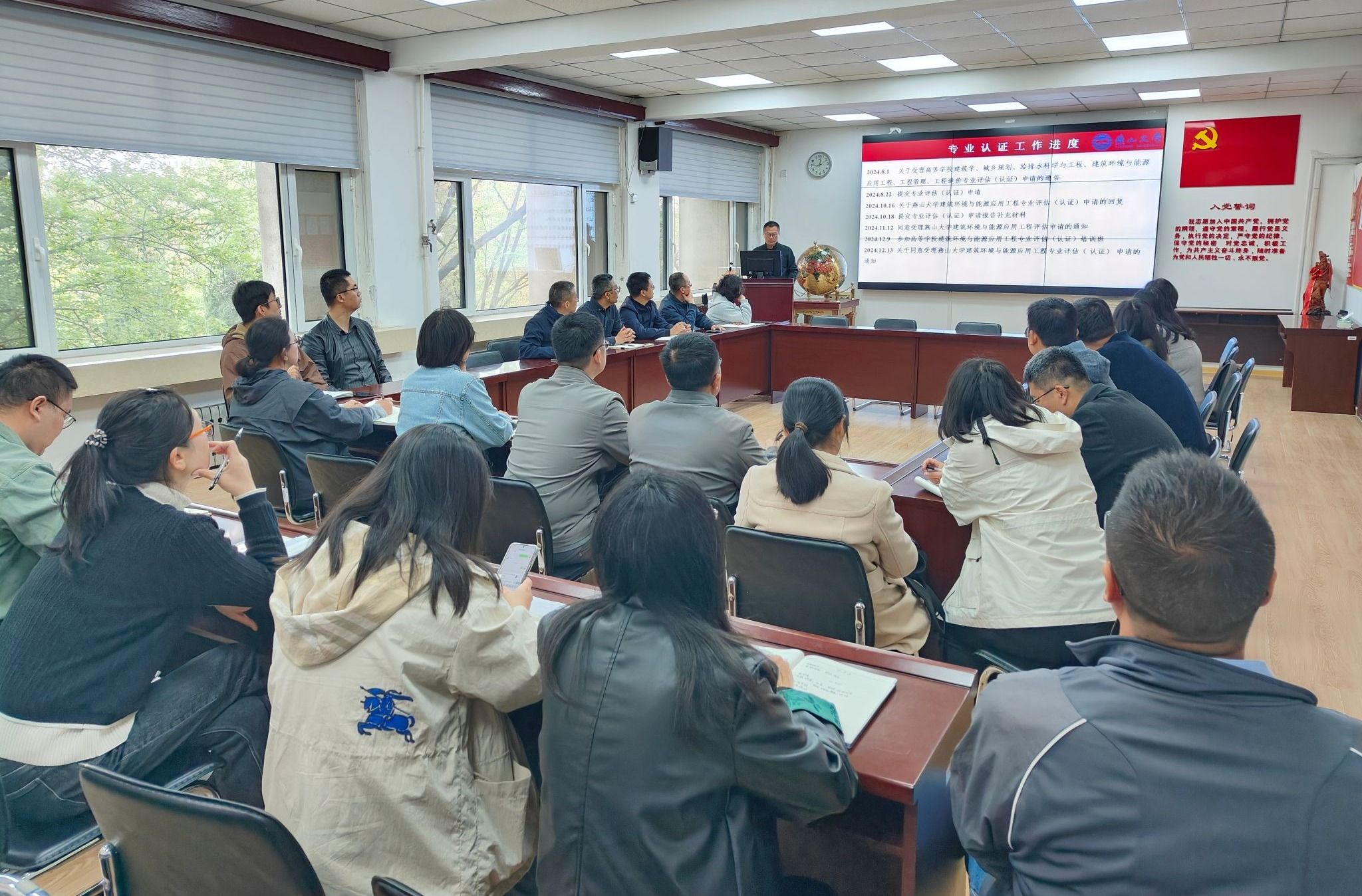 建环系负责人张天虎介绍了2024年8月以来专业开展评估(认证)工作的具体情况,对照评估(认证)文件,介绍了专家进校考查的工作流程、考查要点与具体要求,对各职能部门的协作任务进行了介绍。