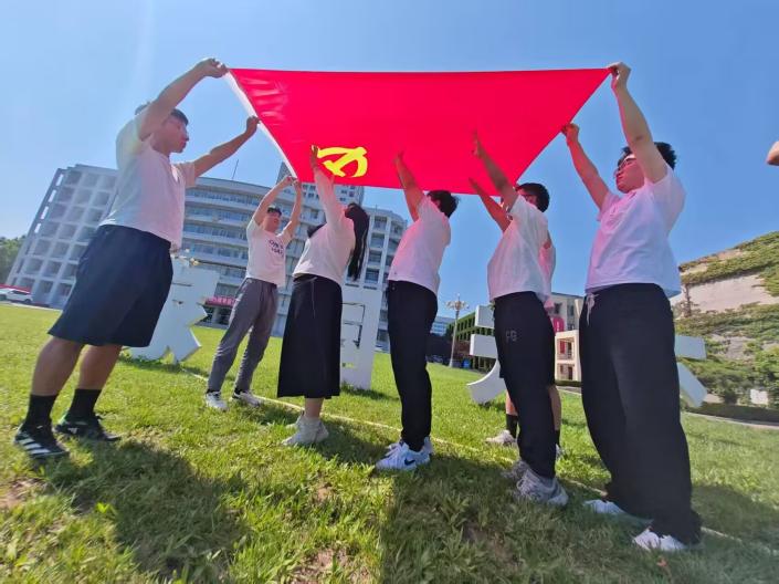 活动最后,支部组织"我与党旗创意合影"环节。鲜红党旗下,青年党员用独特视角定格青春誓言,表达对党的无限忠诚与炽热承诺。