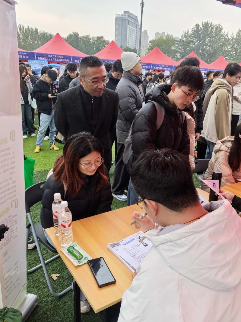 学生目前就业情况,精准推荐符合岗位需求的学生,帮助企业高效筛选人才;党委副书记沈鹏超围绕简历优化、面试技巧、职业发展规划等问题为学子答疑解惑,结合企业岗位特点,指导学生找准自身定位,提升求职竞争力。现场学子踊跃投递简历,与企业招聘人员面对面沟通岗位细节,多名学生与意向企业达成初步就业意向,河北省安装工程有限公司更是与8名毕业生现场签订了就业协议。