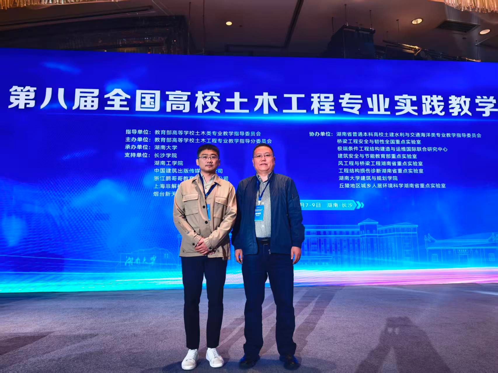 2025年11月7-9日,第八届全国高校土木工程专业实践教学研讨会在湖南长沙召开,本次会议以“人工智能时代土木工程专业实践教学创新发展”为主题,由教育部高等学校土木类专业教学指导委员会指导,教育部高等学校土木工程专业教学指导分委员会主办。来自全国135家土木工程相关单位的领导、资深教育专家及教学骨干和企业代表齐聚一堂,共商人工智能时代我国土木工程专业实践教学的转型和升级。副院长曹海莹及土木系副主任陈正心代表学院参会。