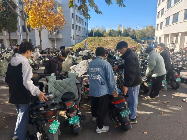 2023级工程力学1班、2班,以及建筑环境与能源应用工程1、2、3班等5个团支部,在东校区六舍、八舍门口停车区域开展志愿服务活动。团员们主动响应、积极参与,以饱满的热情和细致的行动,为校园文明建设注入青春活力。