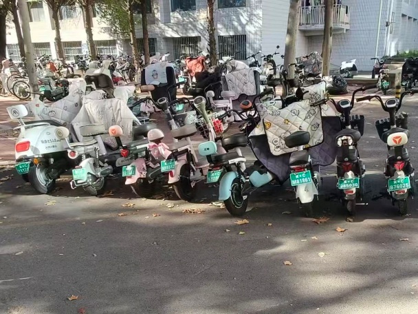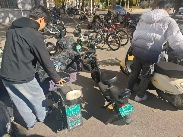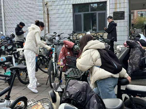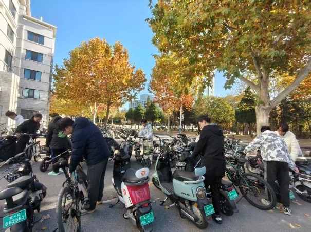 活动当日,同学们准时于指定地点集合,迅速投身停车区域整理工作。我校东区六舍、八舍门口停车区作为校园内人流量大的停放点,日常车辆往来频繁,常年存在车辆歪斜错位、占用通道及少量垃圾堆积问题。同学们迅速分工、默契配合。在六舍门口,志愿者们轻挪自行车,或是两人调整电动车,还耐心修正车头朝向,确保车辆规范入位;东八舍区域,大家注重细节,或调整间距、或修正压线、或清理杂物,让停车区环境“加分” 。经过努力,杂乱停车区焕然一新:车辆分区停放、排列成行,车头统一朝向。摆放整齐的车辆成为了一道校园温馨文明风景线。